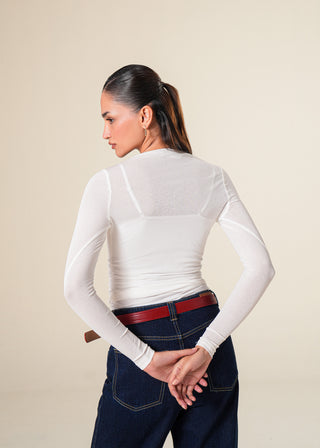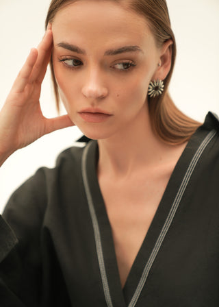 Basic Linen Blend Blouse with contrasting Top Stitches