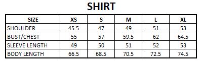 Shirt with a Band collar and V-neckline, pleat at front, full sleeves with cuffs, and a back yoke.