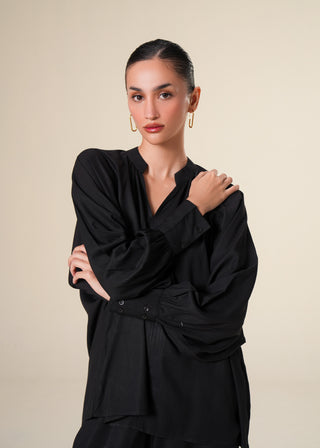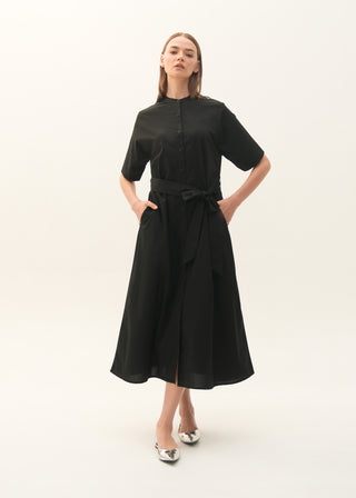 Flared Cotton Dress with Raglan Sleeves