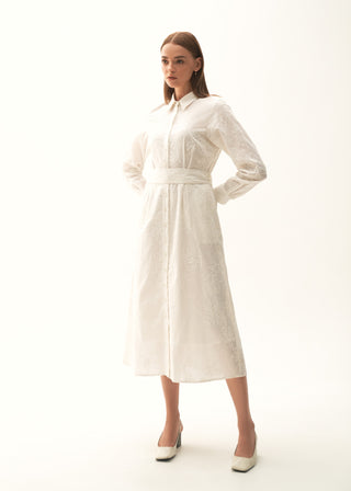 Flared Dress with contrasting top stitches