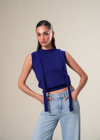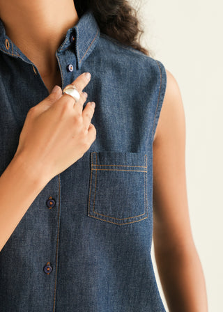 Sleeveless Denim Shirt in Dark Indigo Wash