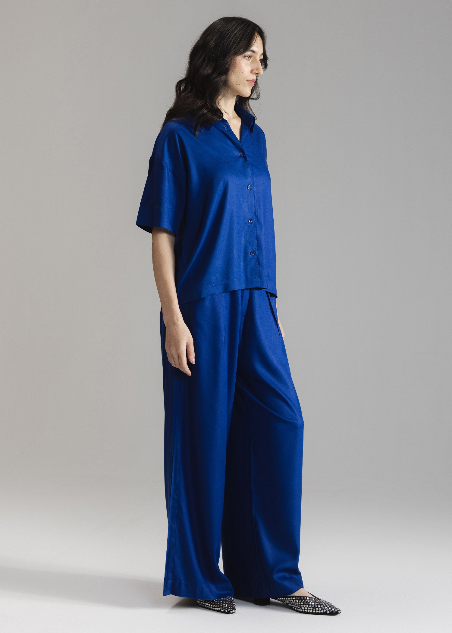 Relaxed fit button down shirt with half sleeves and collar