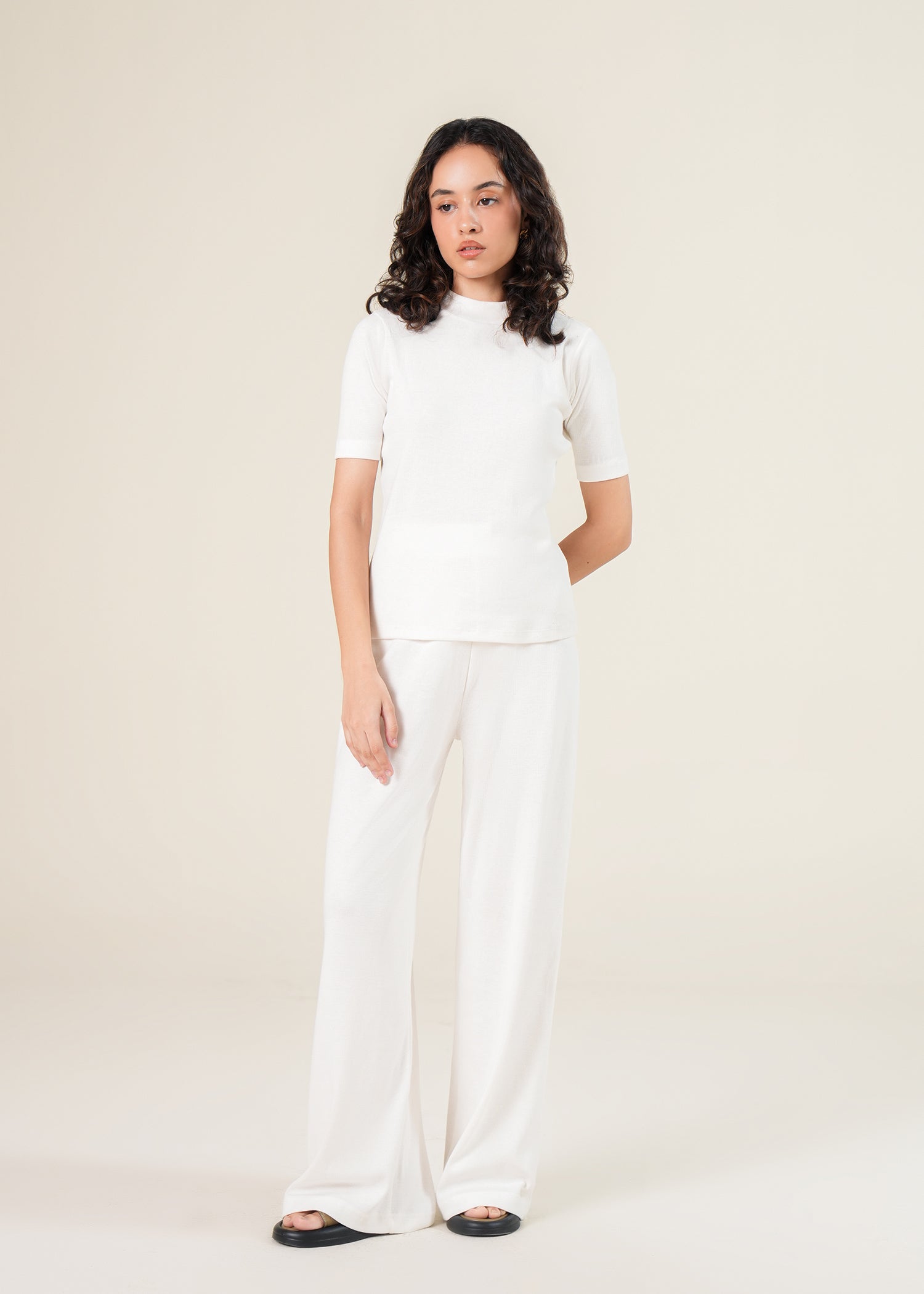 Mock Turtle neck ribbed knit shirt with half sleeves