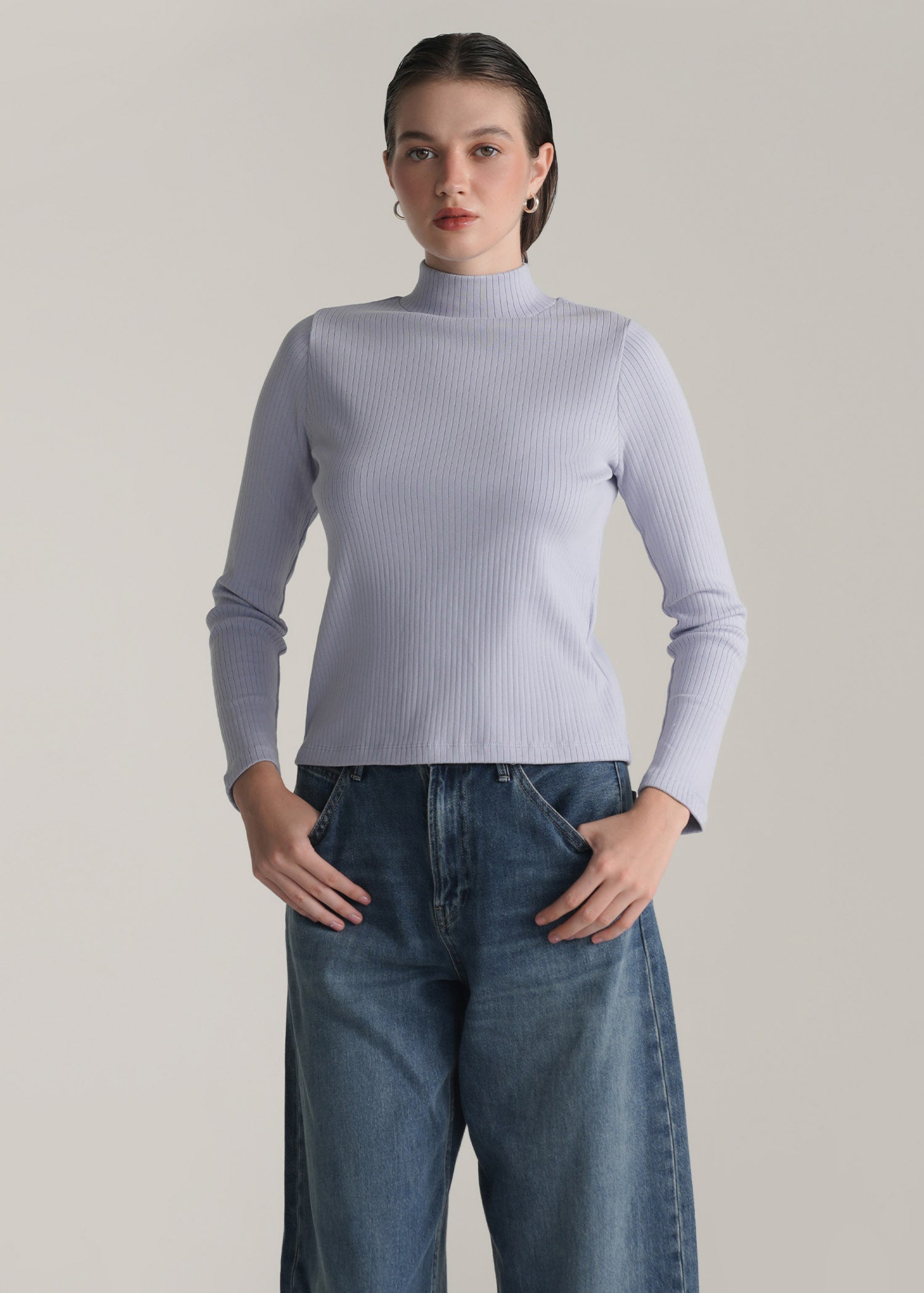 Mock Neck Ribbed Top