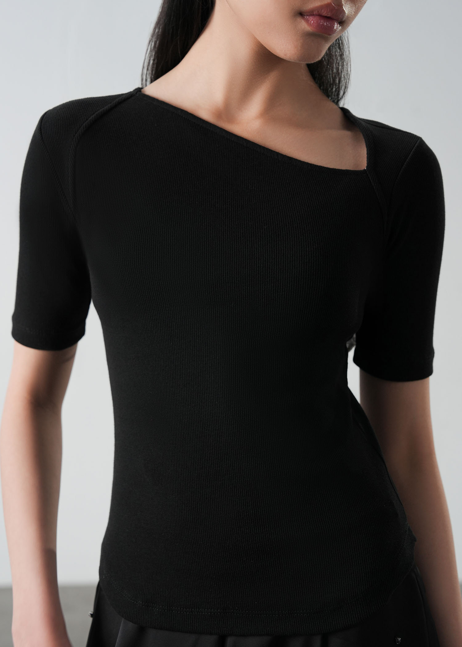 Asymmetrical Neckline Slim Fit Top- WS26-110