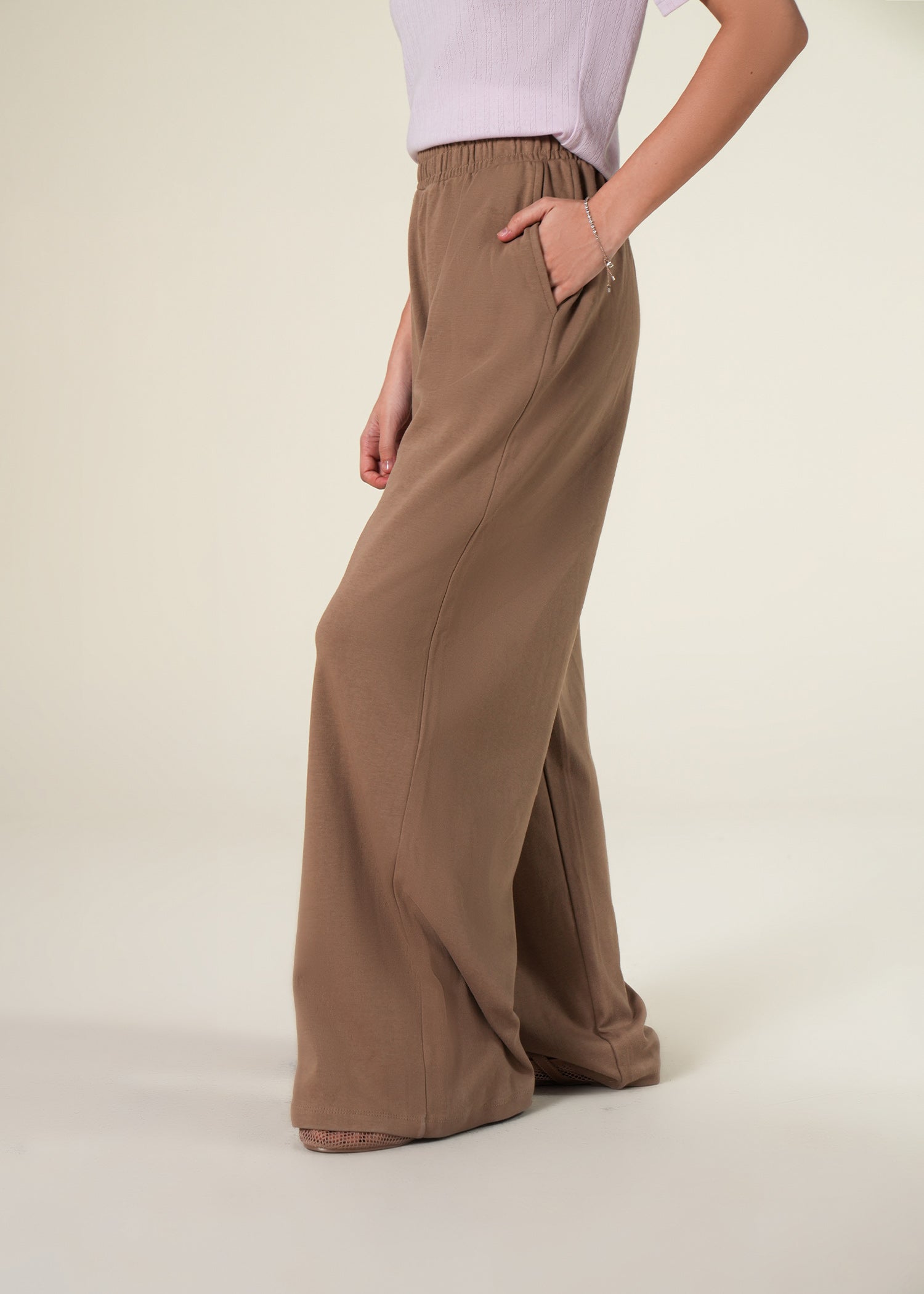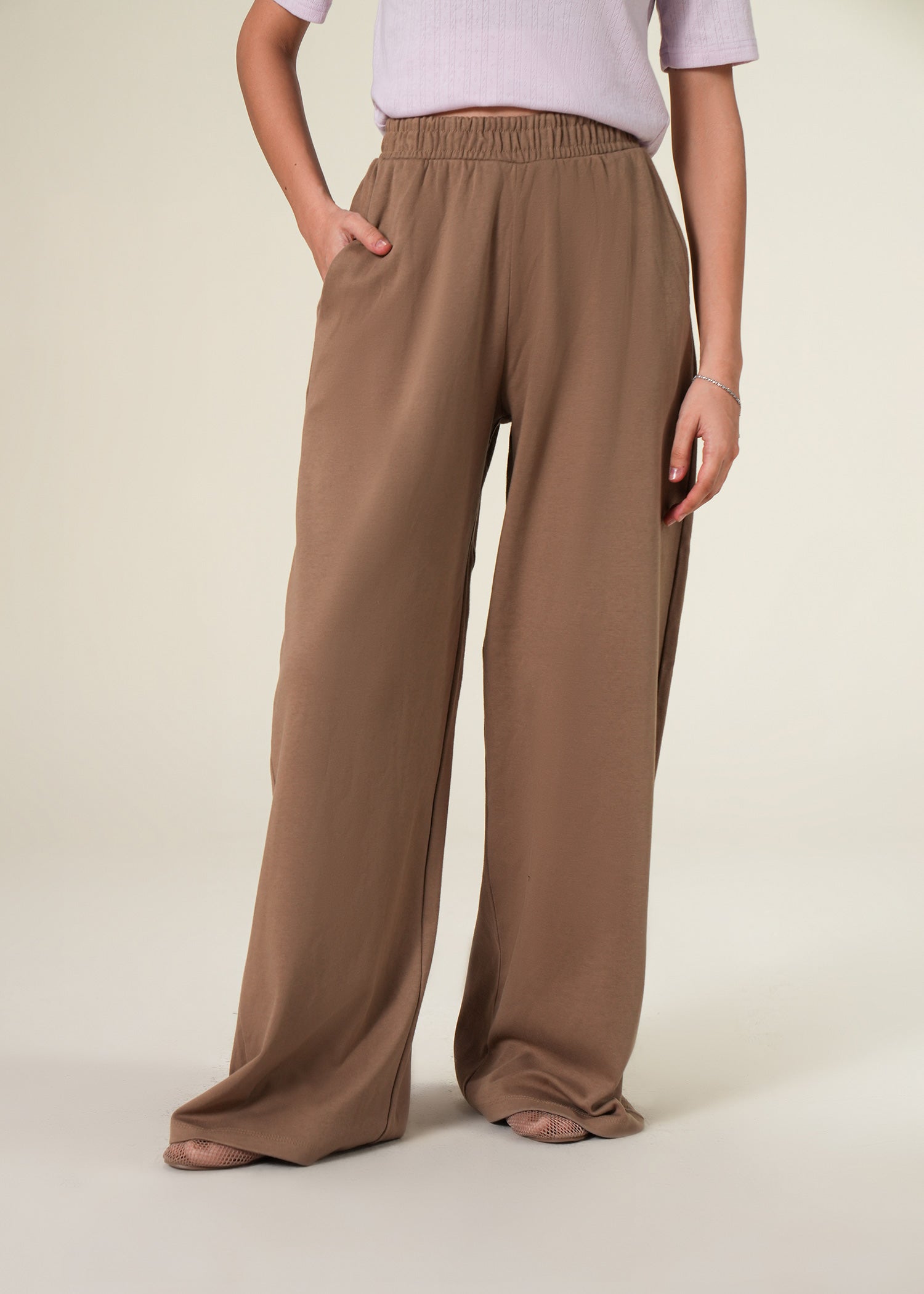 Interlock straight legged trouser featuring elastic waistband