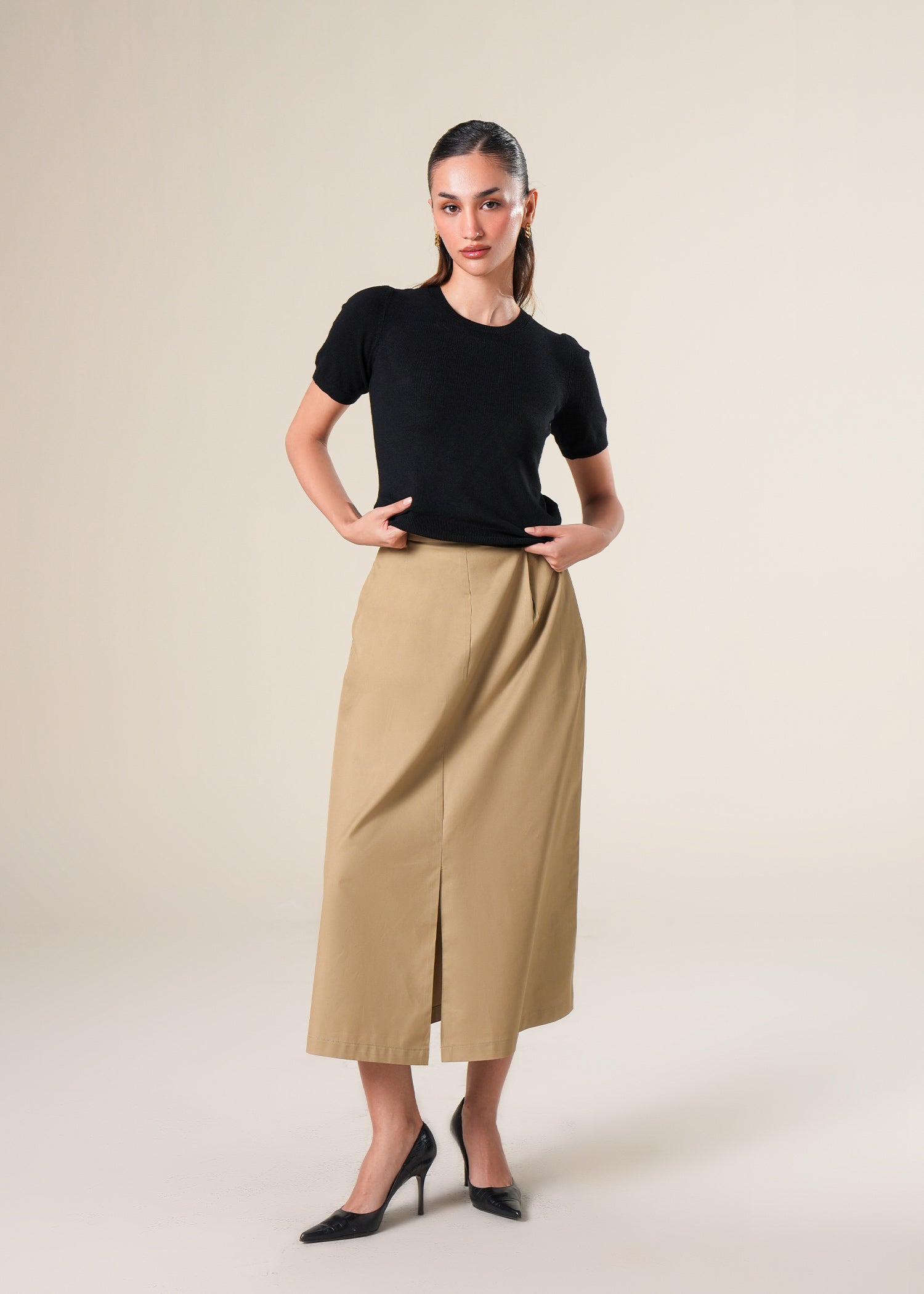 Knitted relaxed fit cardigan with crew neck and long sleeves.