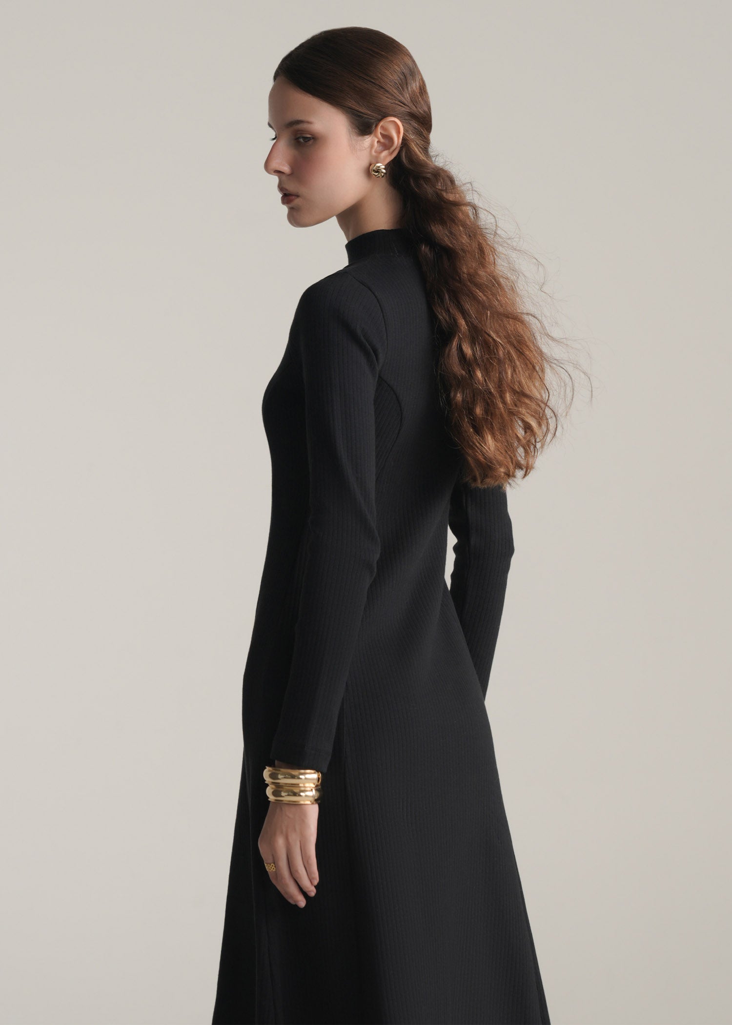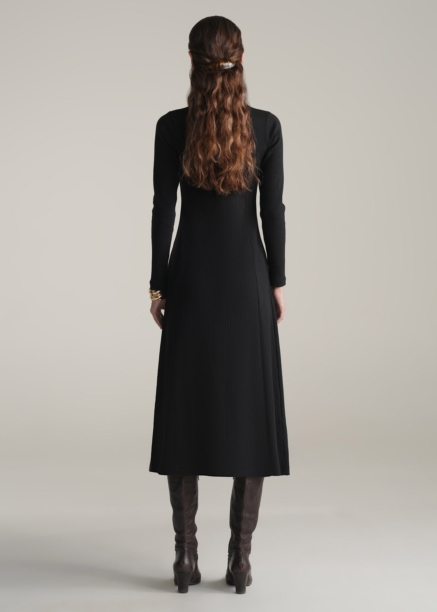 Mock Neck, Ribbed, flared dress with Princess Panel and long sleeves