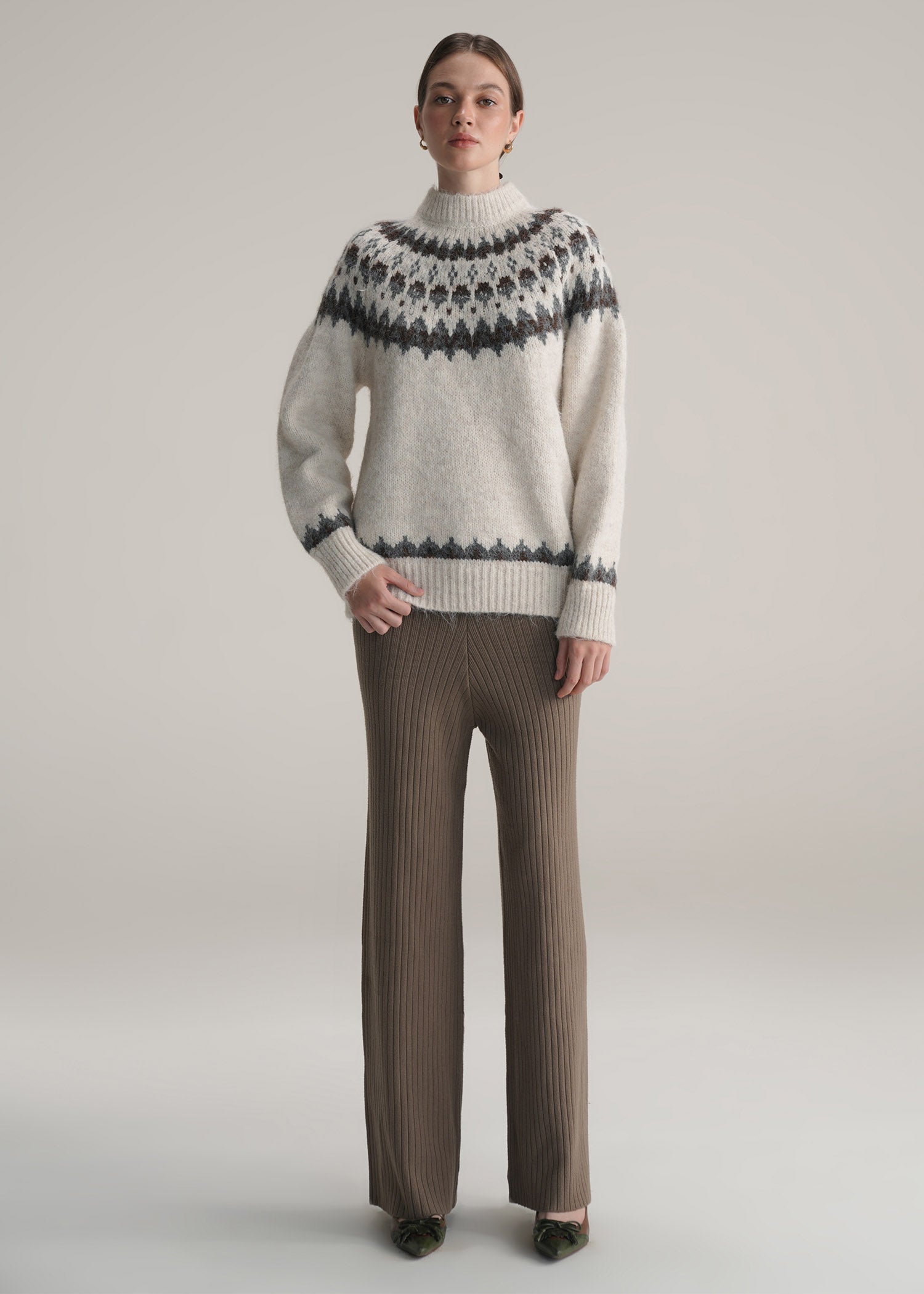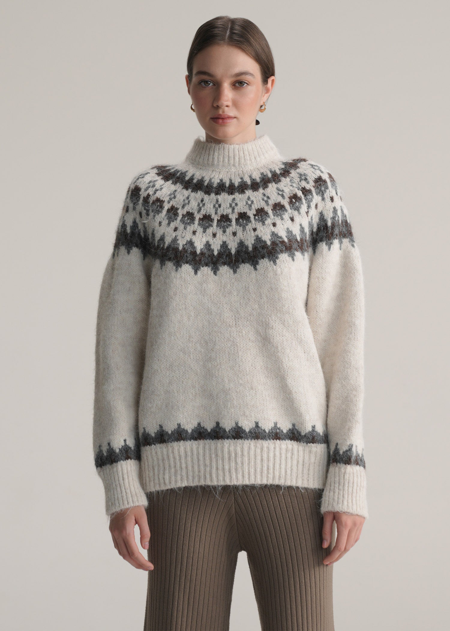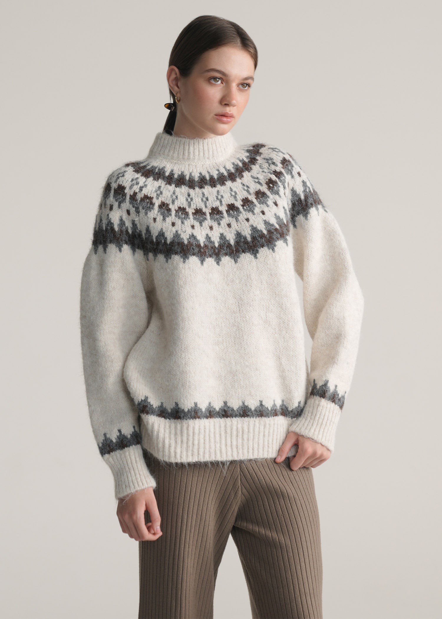 Oversized Mock neck knit sweater with raglan sleeves and rib hem.